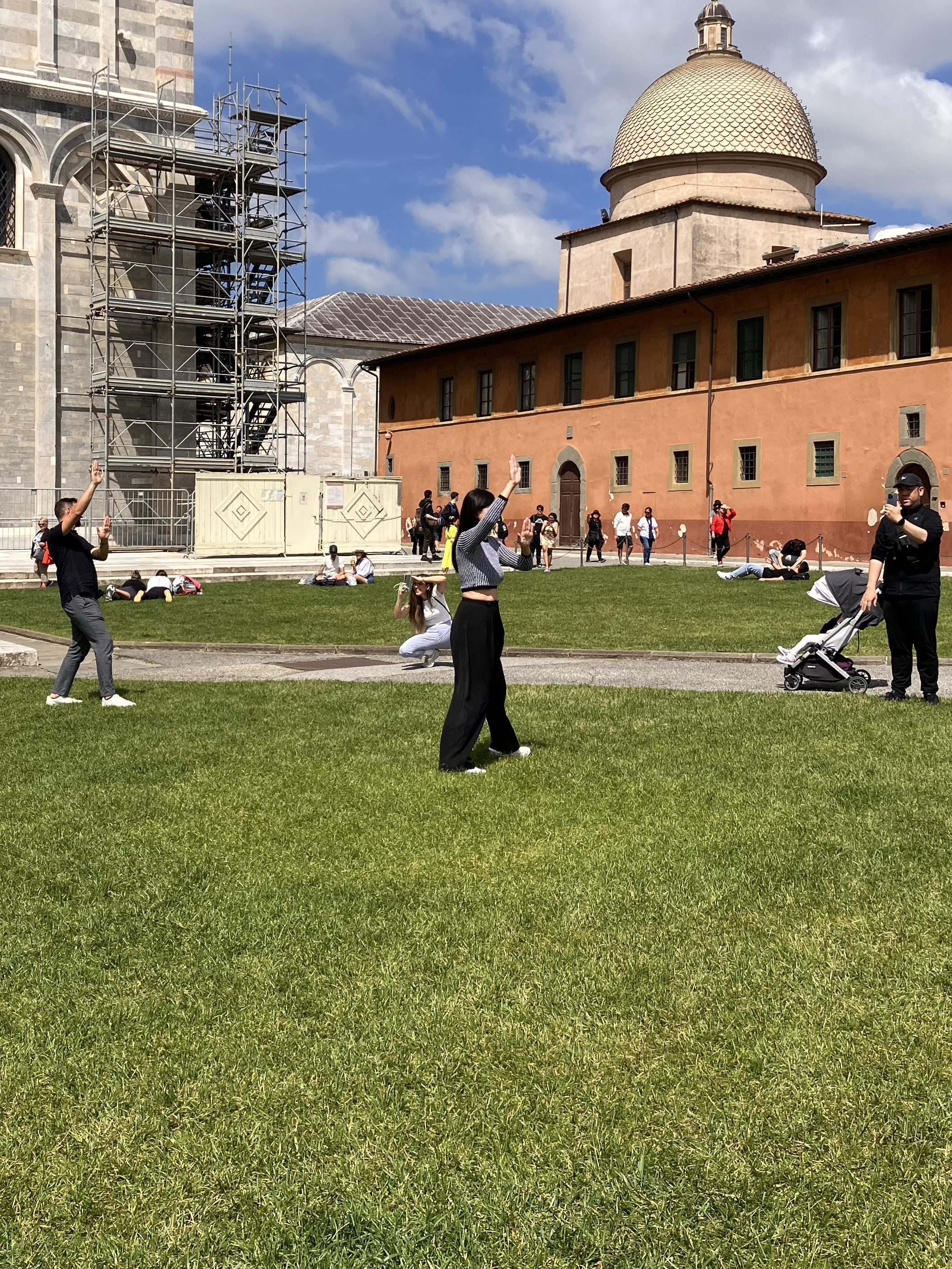 I stick to my current path, and before I realize it, the buildings vanish, and I find myself in the magnificent expanse of the Piazza del Duomo. Before me stand the cathedral, baptistery, and bell tower of Pisa. It’s truly breathtaking.