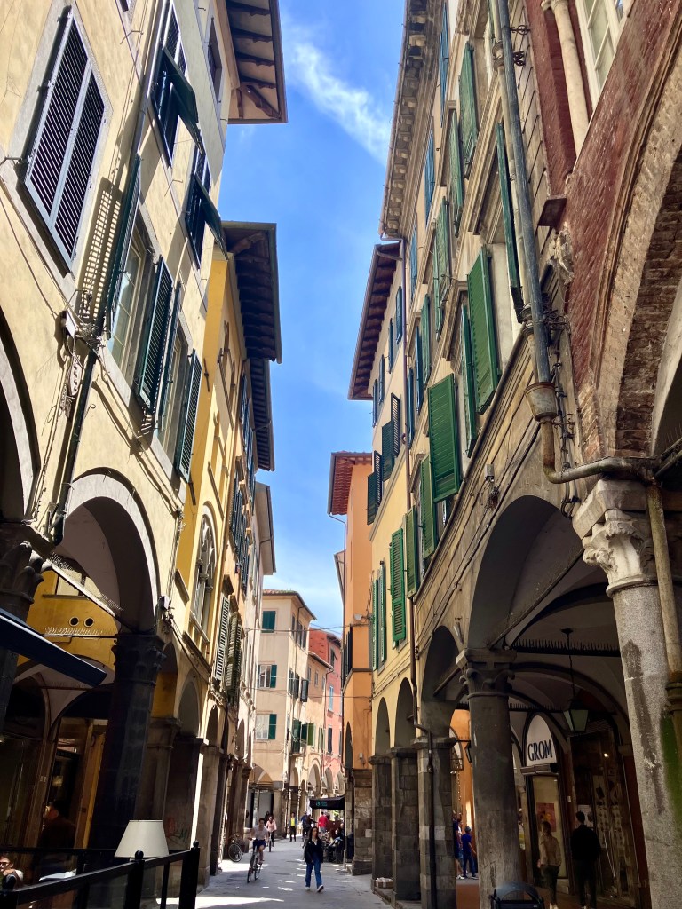Monday morning, I rose to a very wet Edinburgh. Thank goodness I am escaping this weather. I plopped through rain puddles all the way to the tram station, which then took me to the airport. After a pleasant little lunch hour on the plane, I landed in Pisa that afternoon and walked from the airport to my central flat. It was all too easy. The sun was already working its magic, and I was desperate to change into a summer dress the moment I stepped into the cool air of my flat, made possible by its large shaded spaces and tiled floors.